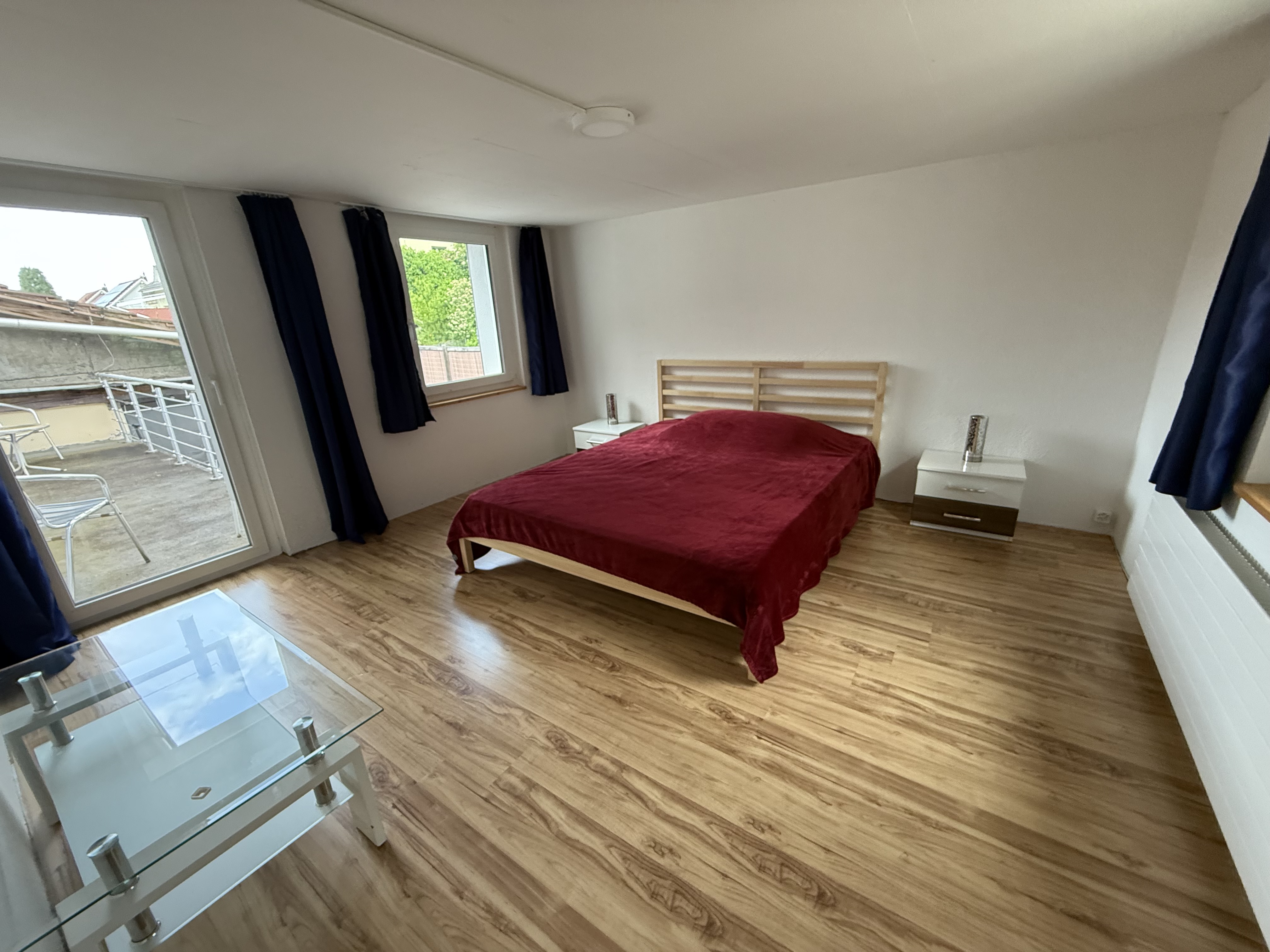 Willkommen in unserem gemütlichen Gästezimmer, das mit einem großen Bett ausgestattet ist – ideal für erholsame Nächte. Das Zimmer verfügt über ein eigenes Lavabo, sodass du bequem und unabhängig in den Tag starten kannst. Der Zugang zum Balkon lädt dazu ein, den Tag mit frischer Luft und schöner Aussicht ausklingen zu lassen.