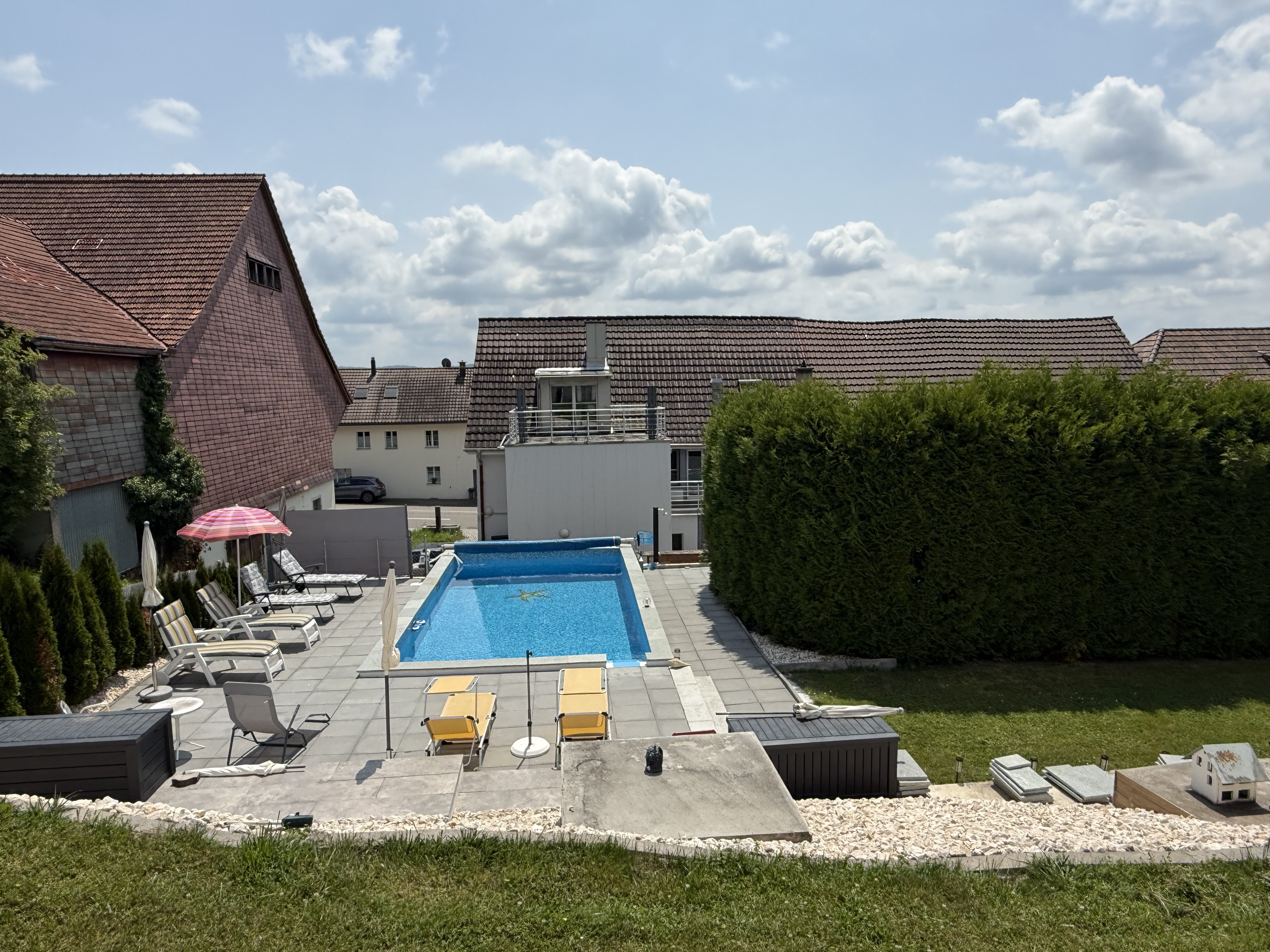 Das Highlight unseres Objekts ist der großzügige Pool mit den Maßen 8 x 4 Meter, der zum Schwimmen, Abkühlen oder einfach nur Relaxen einlädt. Rund um den Pool findest du ausreichend Liegeflächen, um die Sonne zu genießen oder in einem Buch zu versinken. Für die perfekte Chill-Area sorgen gemütliche Sitzgelegenheiten, wo du den Tag entspannt ausklingen lassen kannst.
